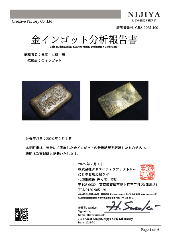 「AI統合非破壊分析による金インゴット測定結果報告書提供サービスの創出」