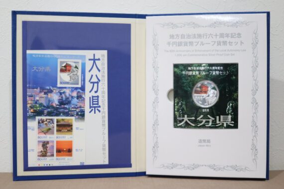 地方自治法施行六十周年記念 大分県 千円銀貨幣 プルーフ貨幣セット 記念切手付 未使用品